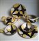 Manlio Trucco Set di due tazze e piatti con lattiera e zuccheriera, 1928;In ceramica smaltata in bianco, giallo e nero a motivo di rondini, piatti diam.