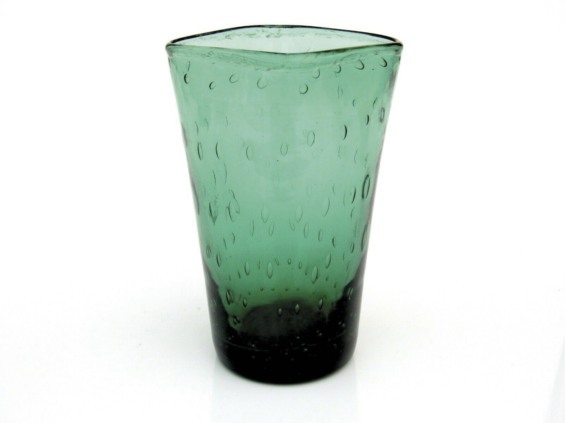 Venini Murano Vaso;in vetro verde a bolle a sezione troncopiramidale....