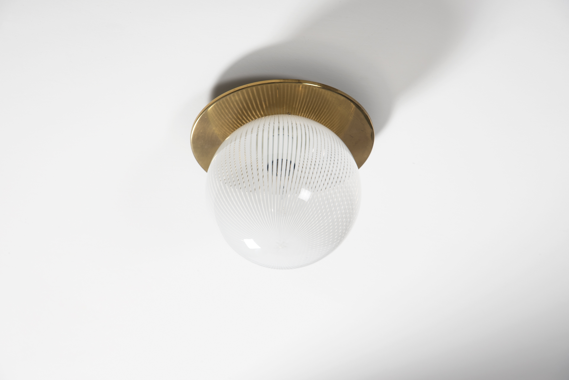 Ludovico Diaz de Santillana Plafoniera modello "Tessuto", Anni ’70;In vetro tessuto con filigrana in vetro lattimo,