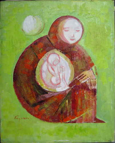 Paganini Carlo " Maternità " Olio su tela cm 33 x 41 Firmato in basso a sinistra, Prov. COLLEZIONE PRIVATA