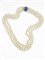Collana a tre fili di perle coltivate, fermezza con zaffiro Sri Lanka, taglio cabochon, di ct 18.00 circa