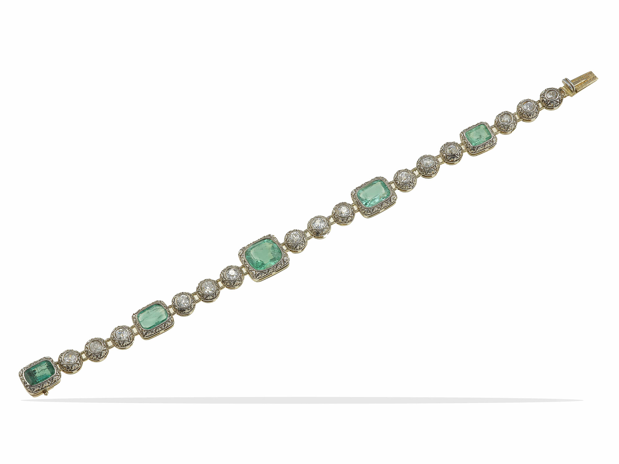 Lot 167 | Bracciale con smeraldi e diamanti di vecchio taglio