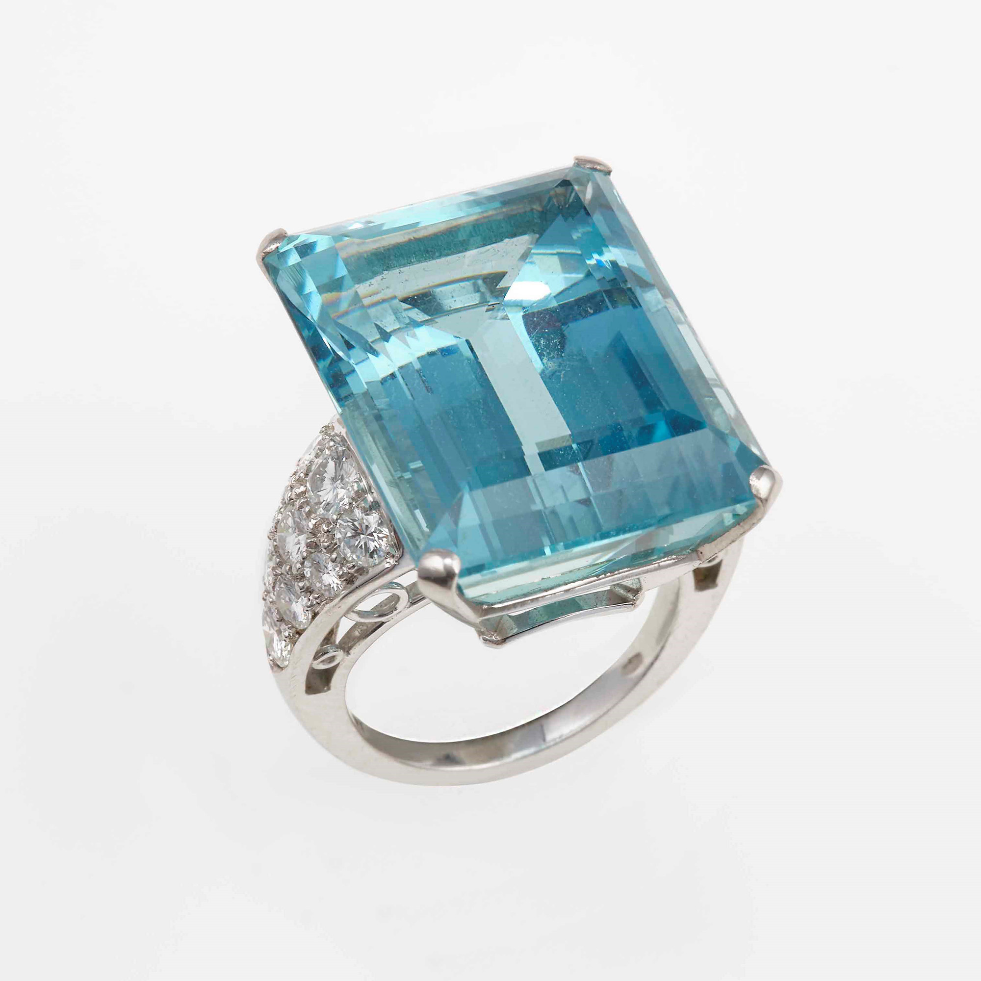 Anello con acquamarina di ct 35.89 circa con diamanti