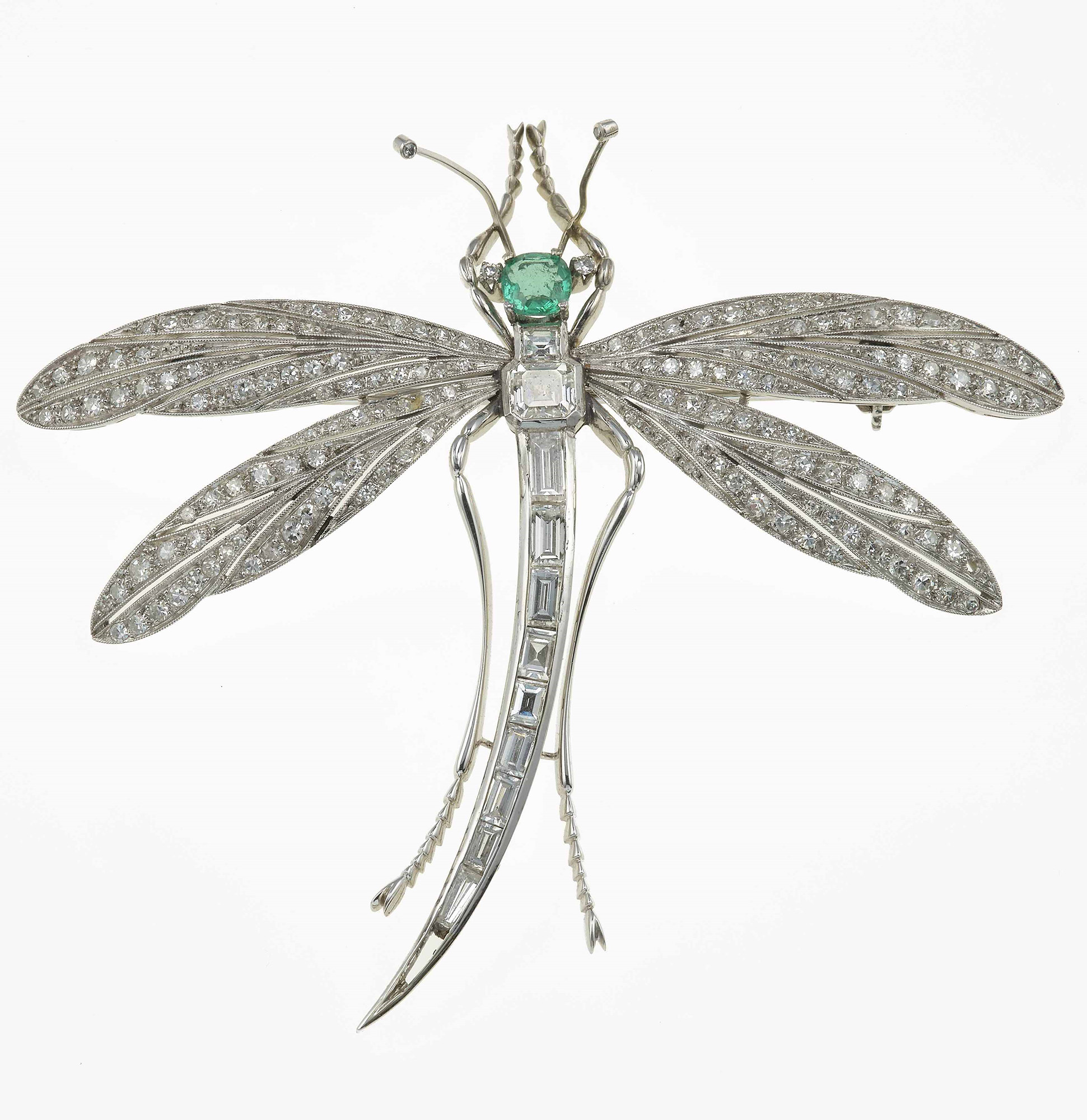 Lot 210 | Spilla "libellula" con smeraldo Colombia e diamanti
