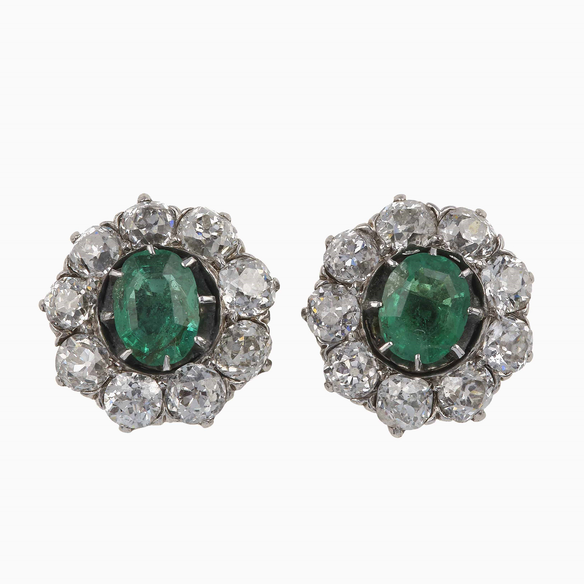 Lot 228 | Orecchini con smeraldi Colombia e diamanti di vecchio taglio