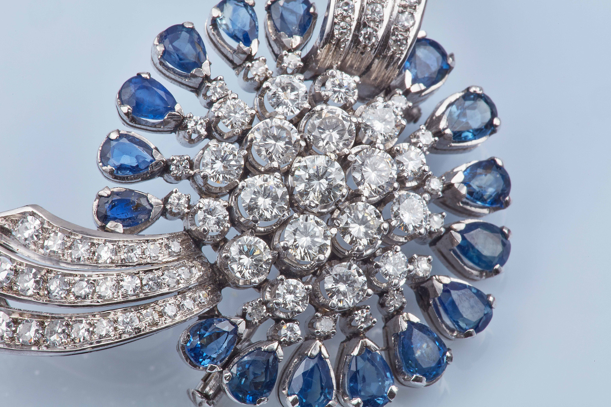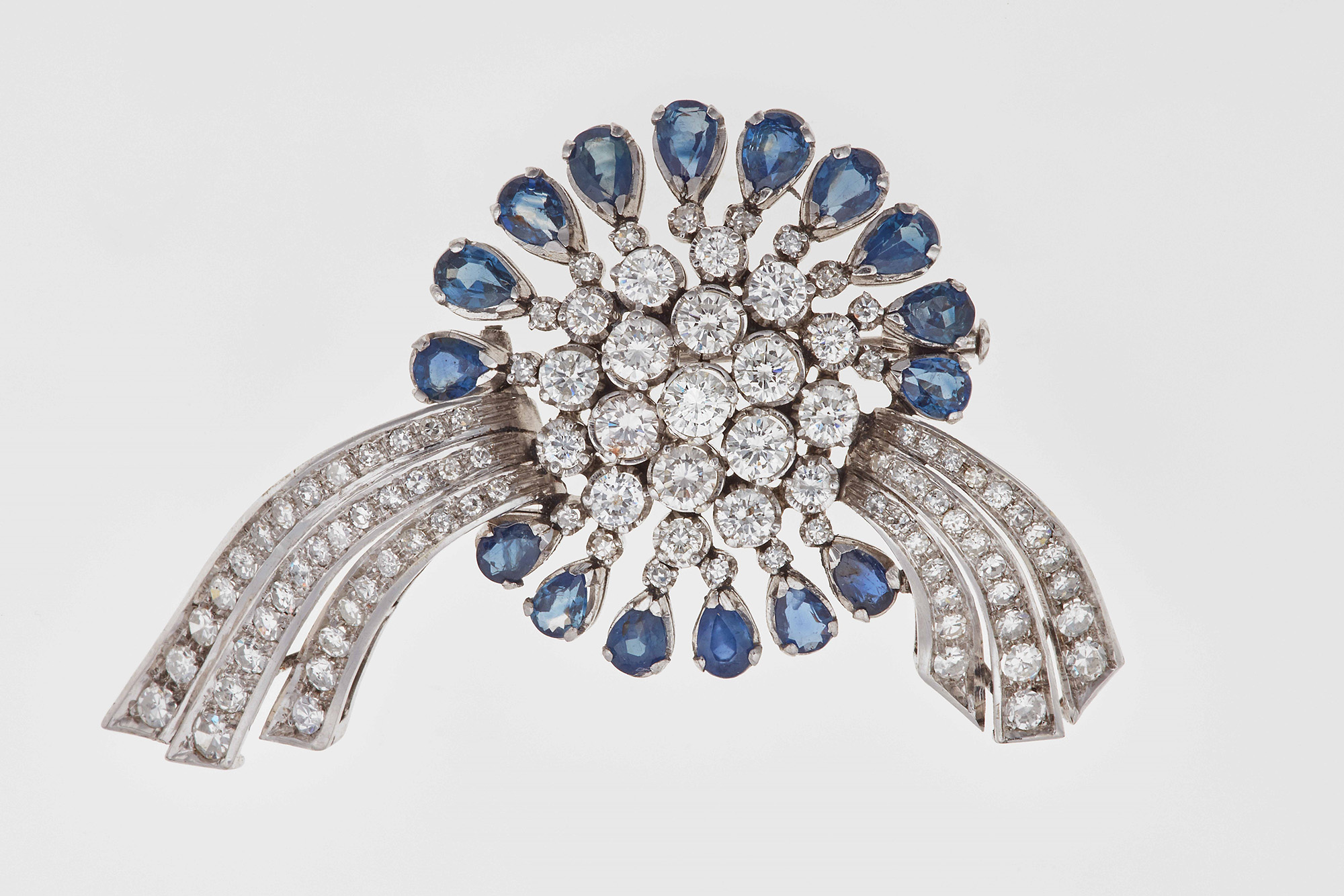 Lot 253 | Spilla con zaffiri taglio goccia e diamanti