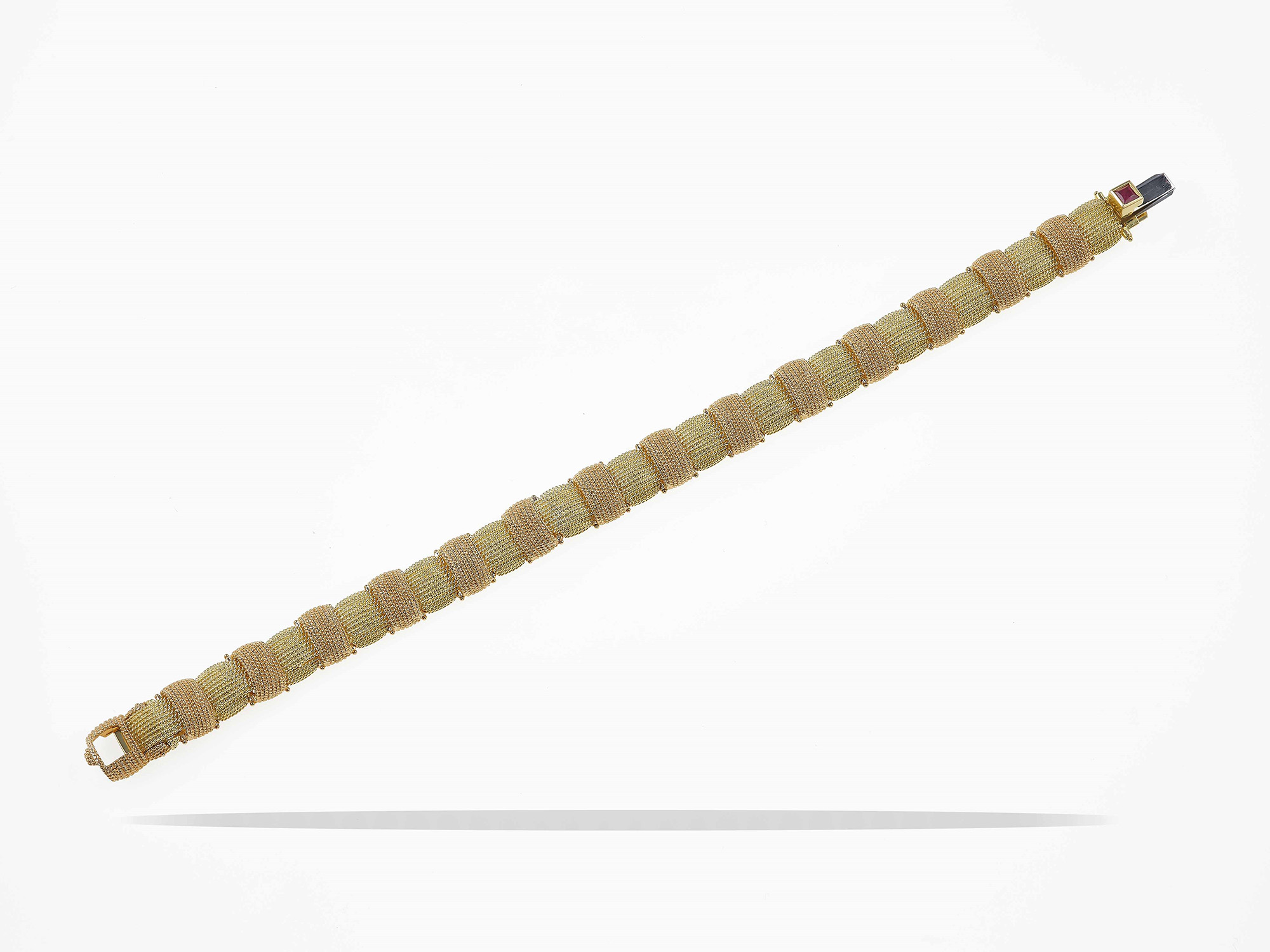 montatura in oro giallo ed oro rosa 750/1000, gr 38.4, cm 0.8 x 19.1