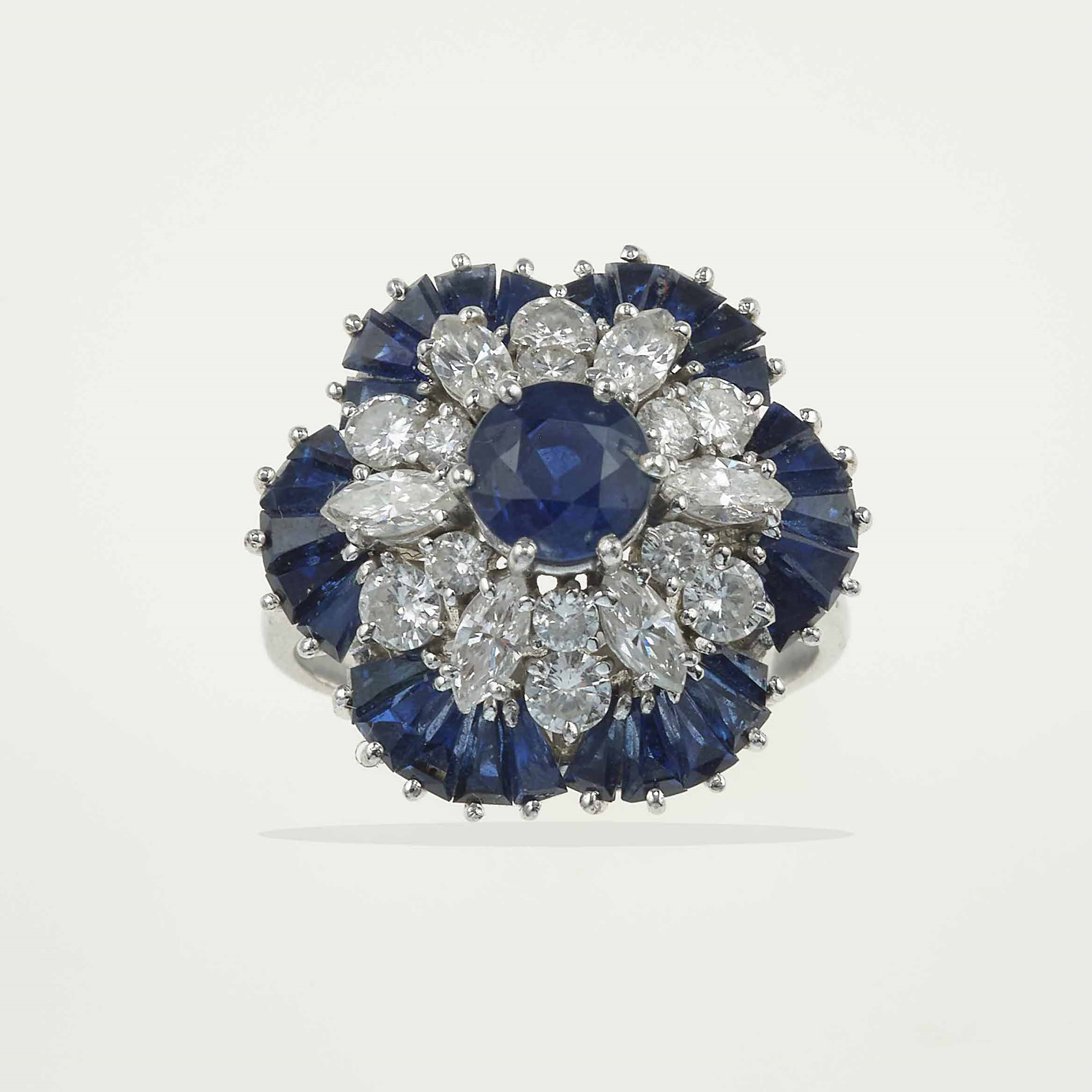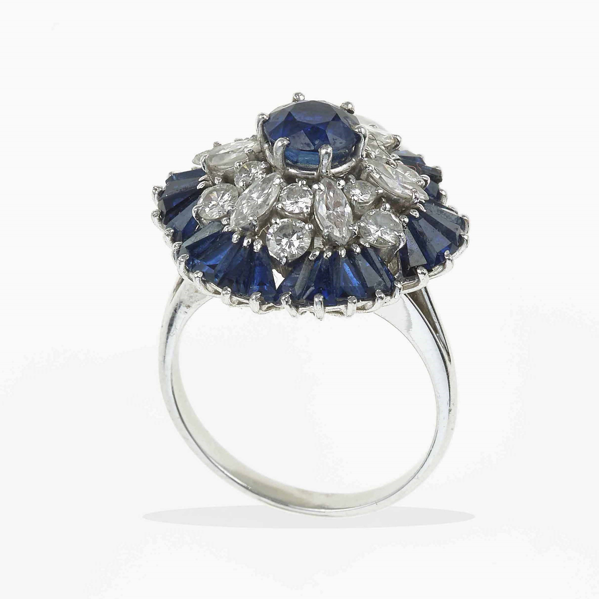 Lot 329 | Anello con zaffiri e diamanti taglio brillante e navette