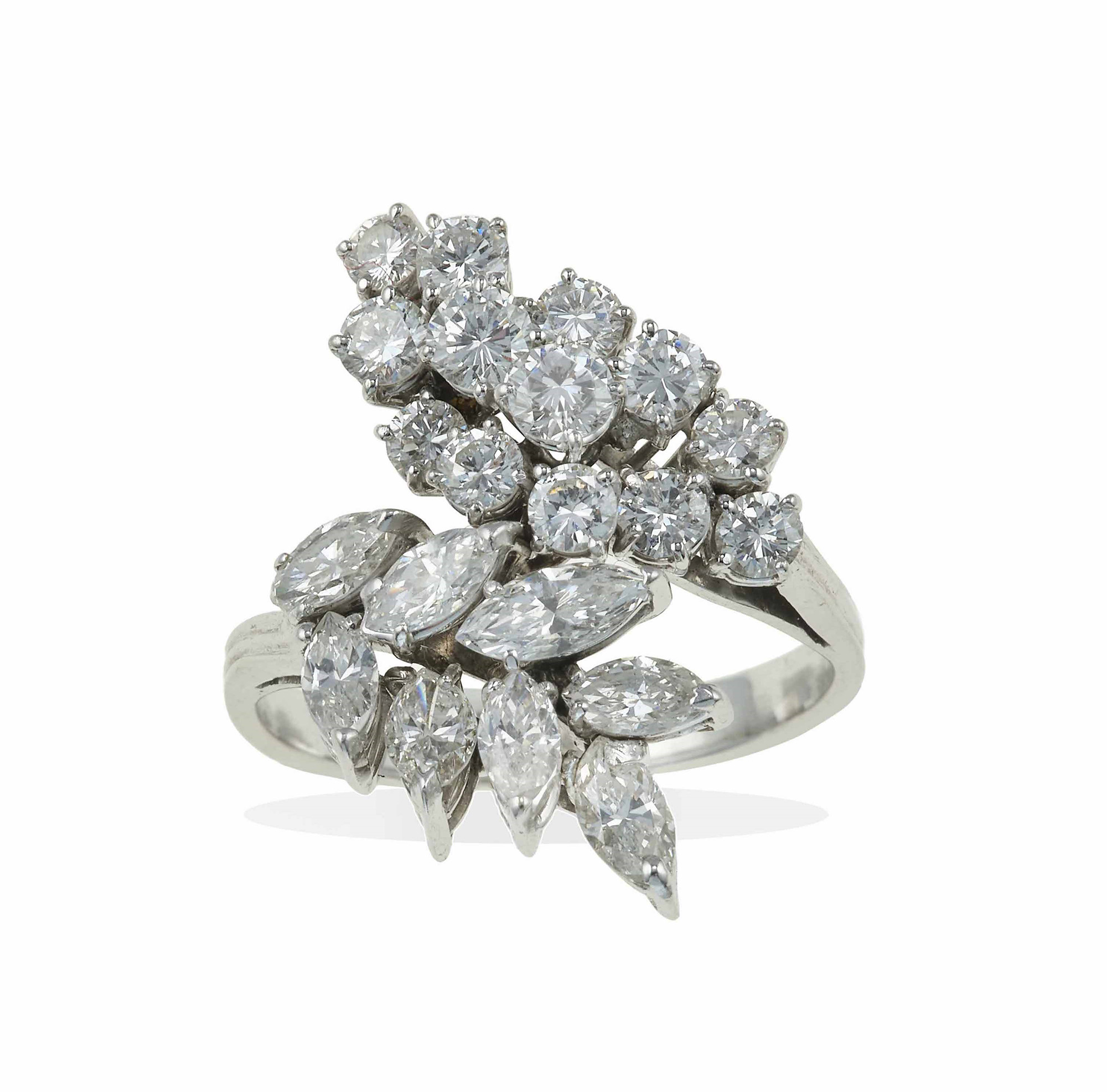 Lot 338 | Anello con diamanti taglio navette e diamanti taglio brillante