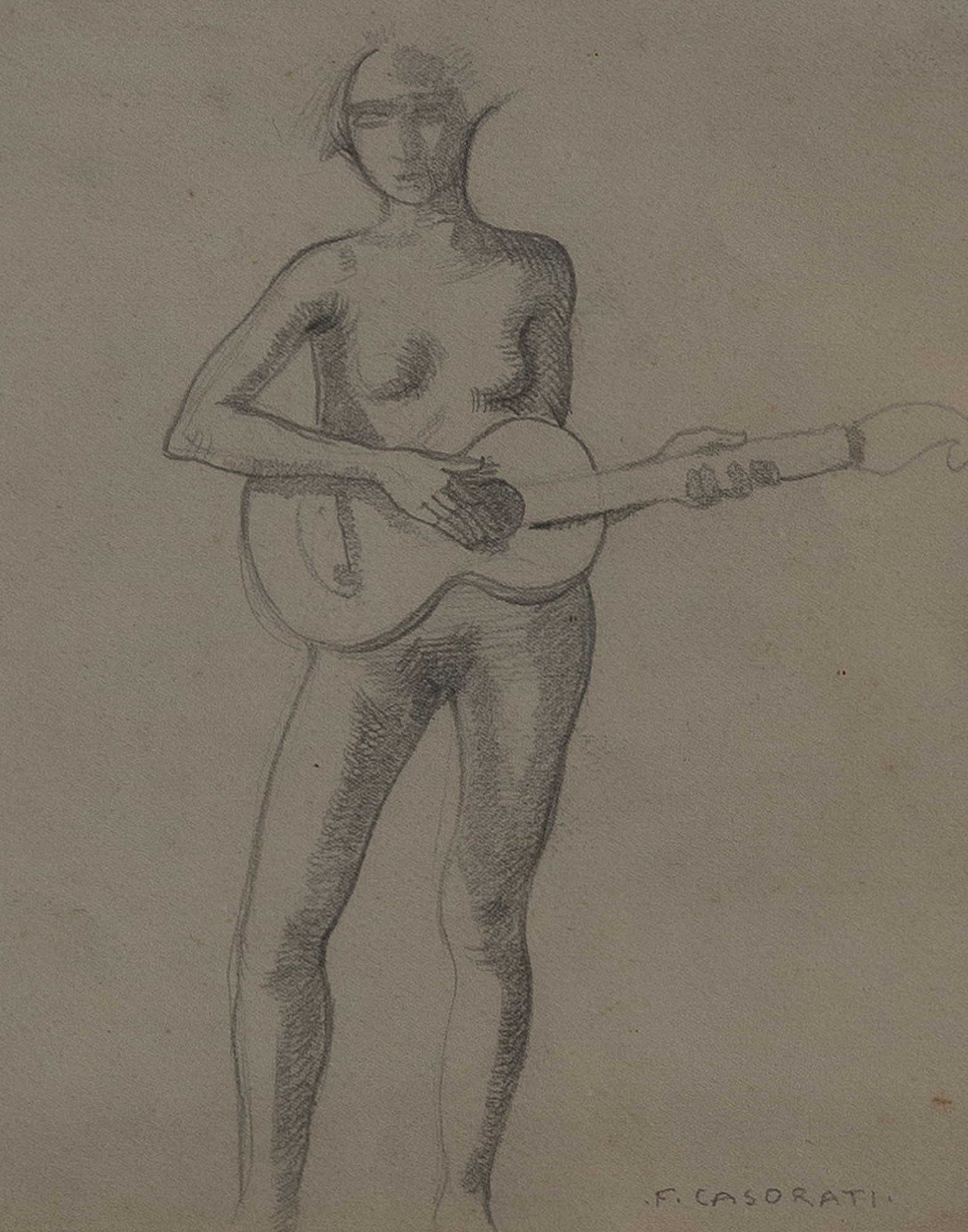 FELICE CASORATI Figura con chitarra, anni '40