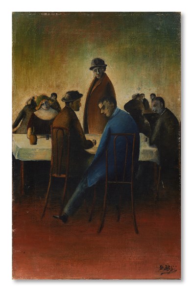 Ottone Rosai "Ristorante" 1920 olio su tela cm 52,9x33,5 Firmato in basso a dest