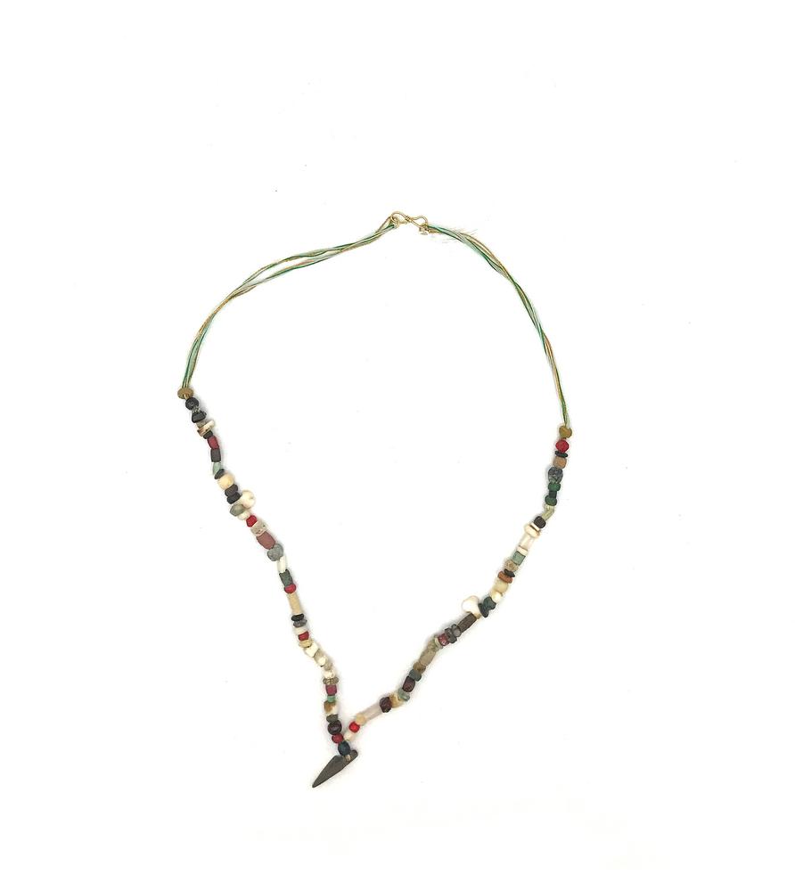 in pietre dure, pasta vitrea e cristallo di rocca, con vaghi cilindrici, sferici e prismatici, formata con elementi antichi, lung cm 40