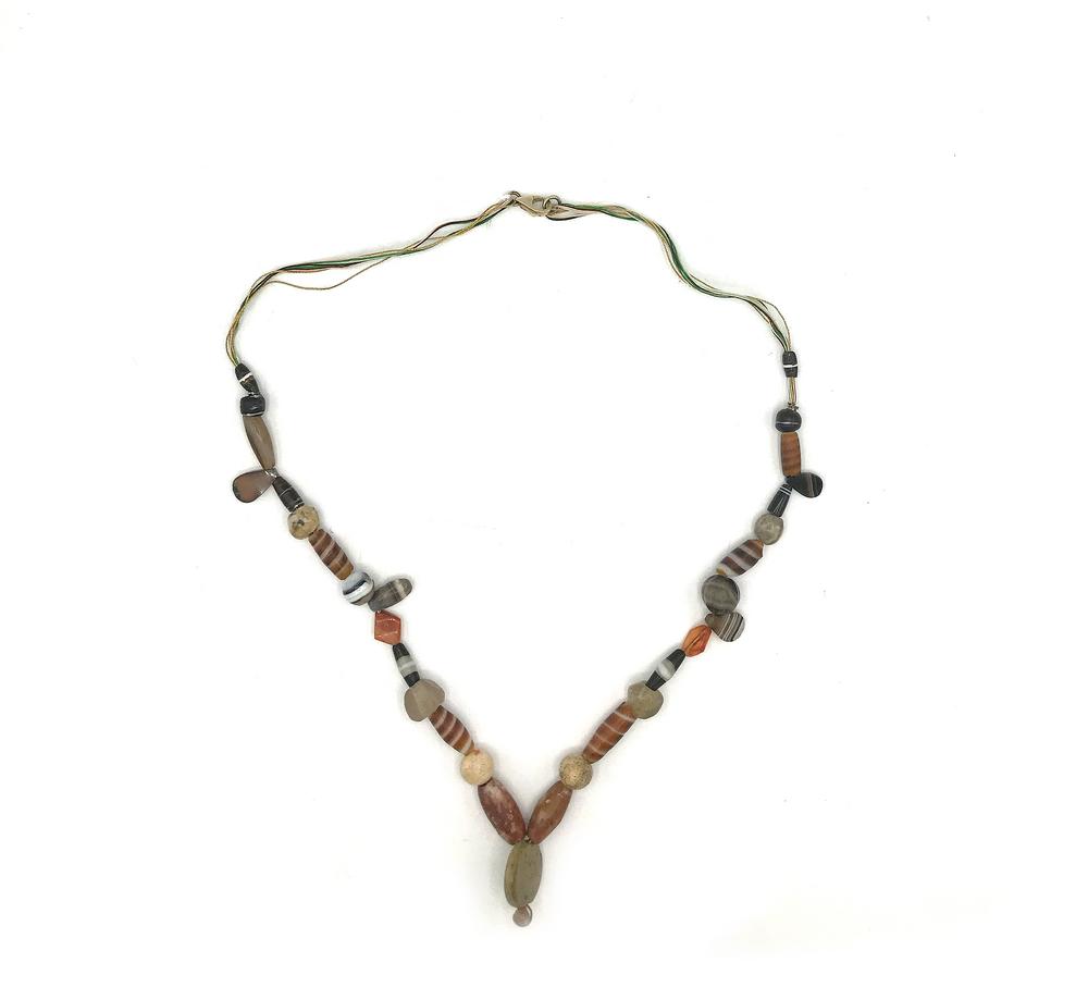 COLLANA in agata fasciata, cristallo di rocca e corniola con vaghi fusiformi,...