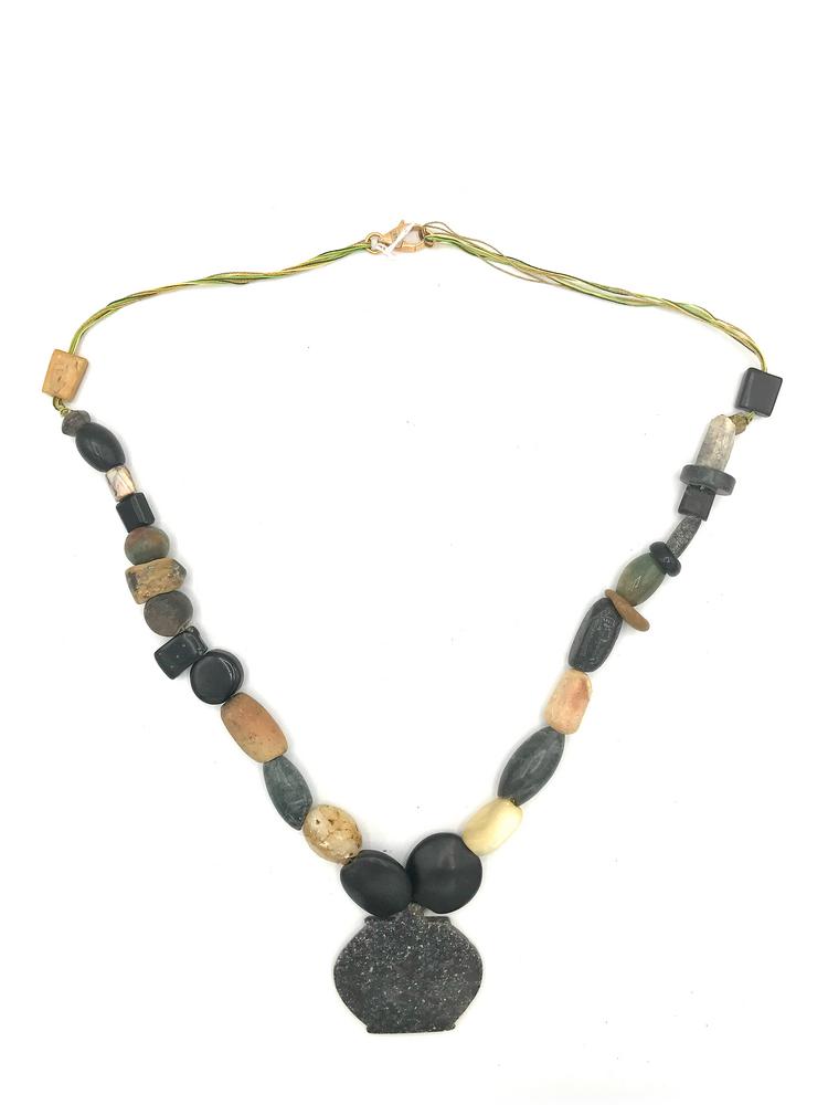COLLANA in pietre dure colorate, con vaghi cilindrici, sferici, fusiformi e...