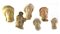 Sei teste pertinenti a statuette votive, fra le quali spiccano due teste maschili barbate di uomo maturo di bella qualità e quattro teste femminili con acconciature variegate