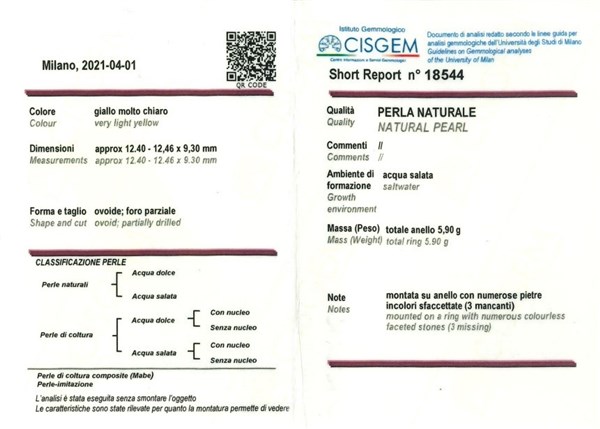 Appended gemmological report CISGEM n. 18544 01/04/2021, Milano