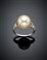 Anello in platino e diamanti con perla a bottone naturale d'acqua salata di mm