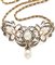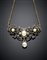 Yellow 9K gold cm 41 circa chain holding a pearl, old mine and rose cut diamond floral shaped centerpiece accented with natural saltwater pearls of mm 11/12 circa and pearls, old mine diamonds in all ct. 1.05 circa, g 35.22 circa, length cm 7.70 circa.