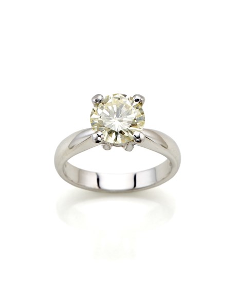 Anello in oro bianco con diamante solitario rotondo di ct. 2,30 circa, g 6,62 c