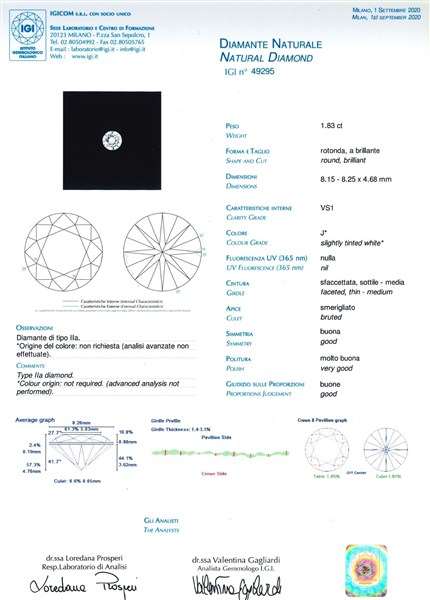 Appended diamond report IGI n. 49295 1/09/2020, Milano