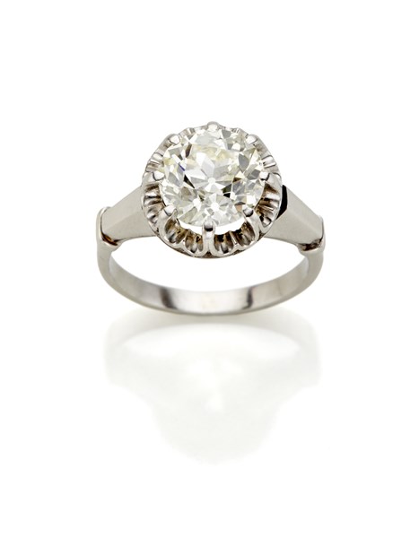 Anello in oro bianco con diamante rotondo solitario di ct. 2,50 circa, g 5,28 circa misura 11/51.