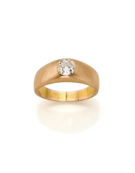 Anello in oro giallo e rosa con diamante solitario old mine di ct. 0,70 circa,