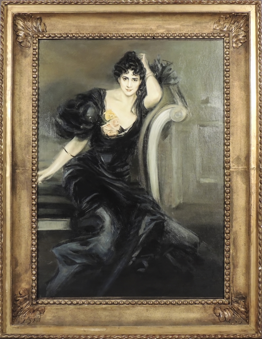 RITRATTO DI DAMA SEDUTA olio su cartone telato, in cornice cm 80x60