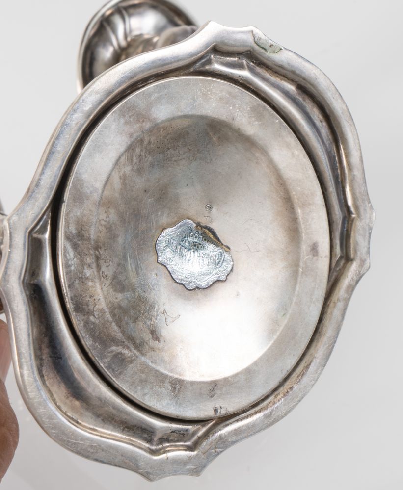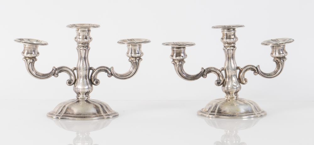 VERCELLI, XX secolo. COPPIA DI CANDELABRI in argento 800. Sui vari elementi...