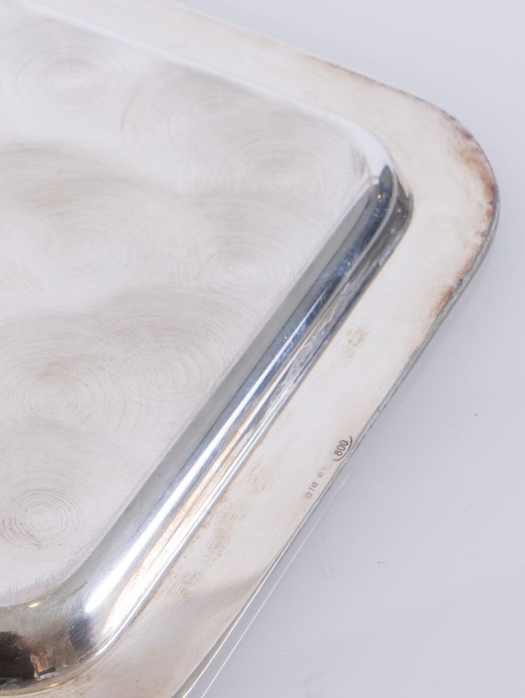 Vicenza, dal 1968. Svuotatasche in argento 800. Sul bordo inferiore reca punzoni: losanga locativa 746VI e 800. Cm 21,4x13. Peso: 180 gr.