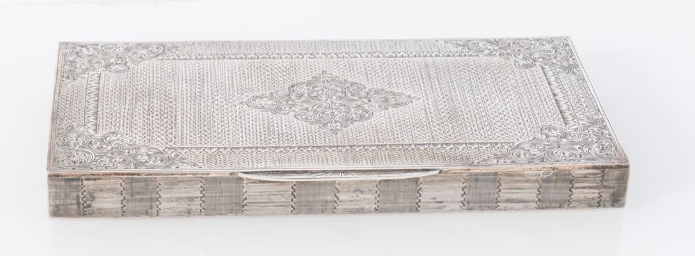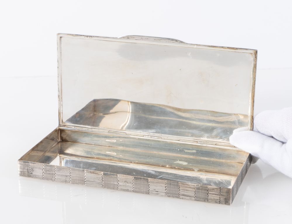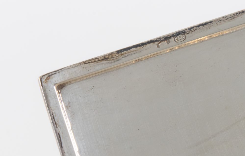 Firenze, metà del XX secolo. Scatola in argento 800. All'interno reca punzoni 800 e losanga locativa fiorentina. Cm 2x20,6x10,6. Peso: 373 gr.