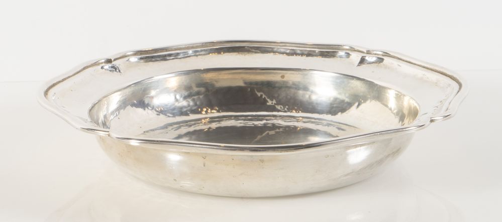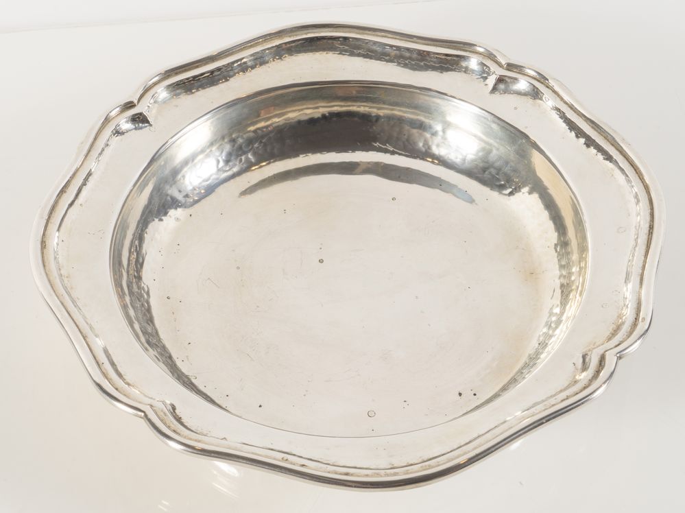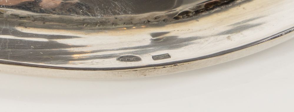 ZONTA ANTONIO, Vicenza, dal 1968. Vassoio polilobato con bordo alto. Sul bordo inferiore reca punzoni: losanga locativa 463VI e 800. Cm 6xØ 32. Peso: 696 gr.