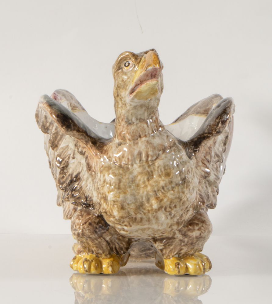 Giardiniera con aquile contrapposte in maiolica policroma. Inizio del XX...