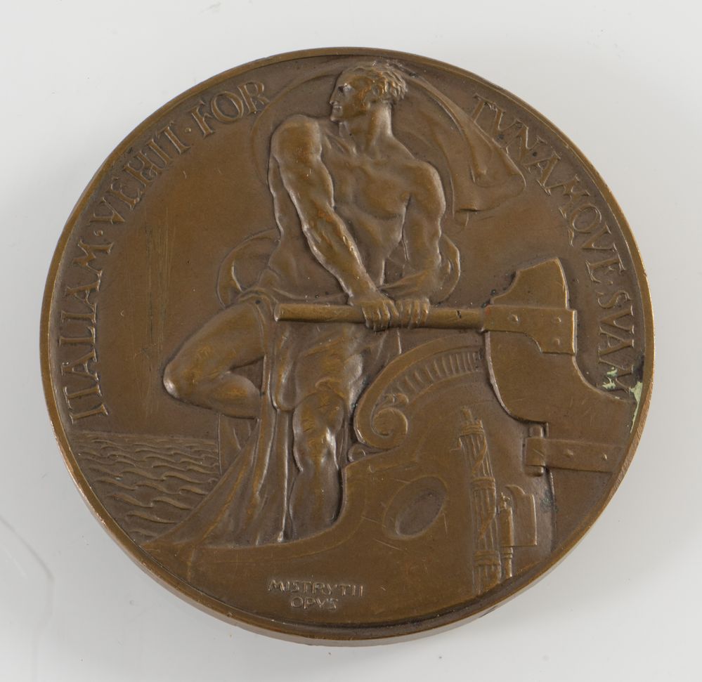 "italiam vehit fortvnamque sva". Medaglia in bronzo, 1925. Un lato reca il...