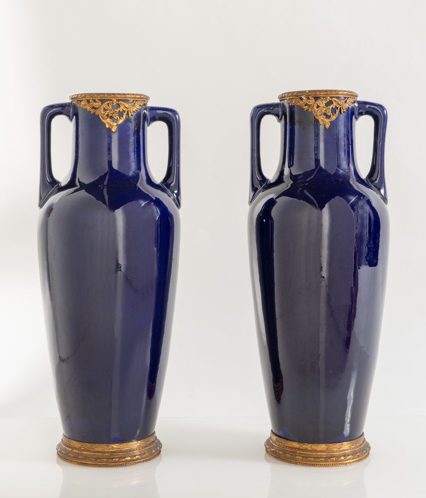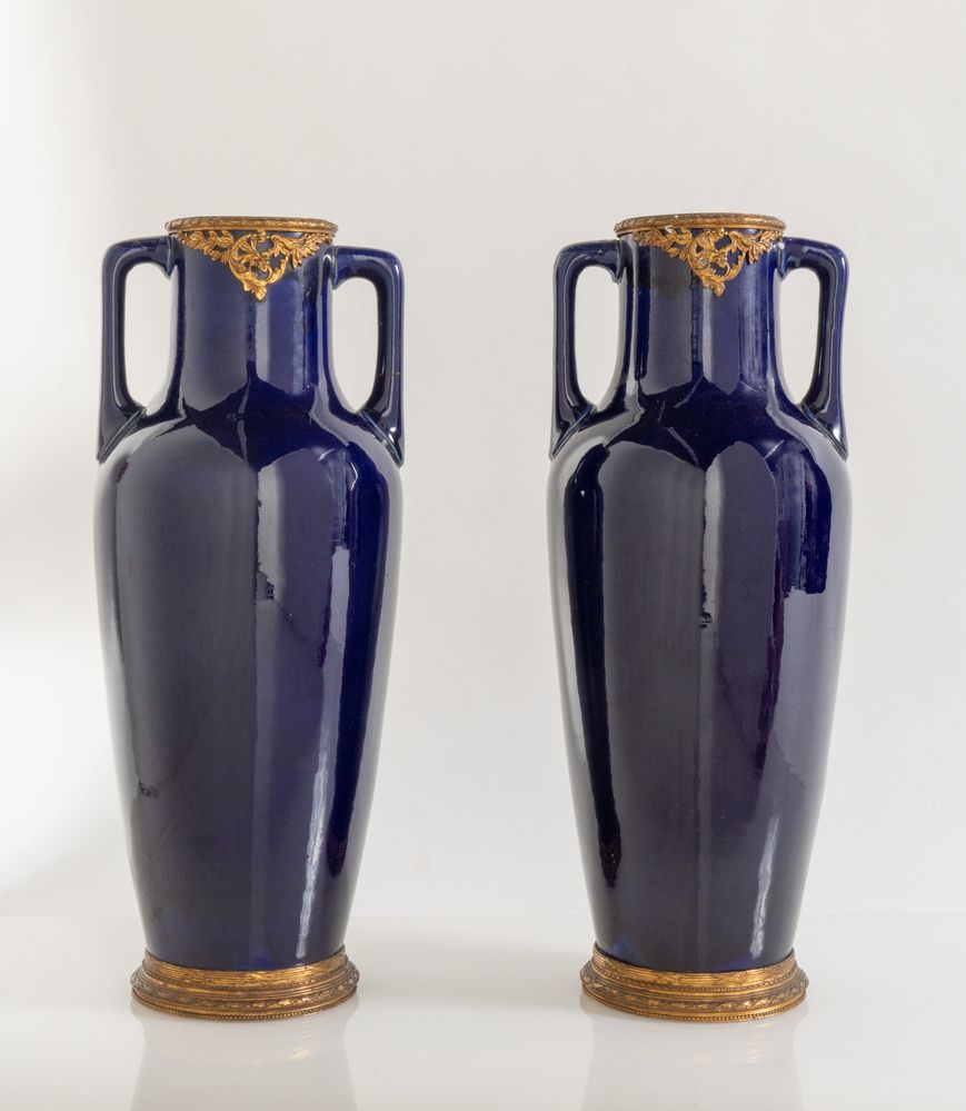 Lot 187 | Coppia di vasi in ceramica invetriata con applicazioni in bronzo. Francia,...