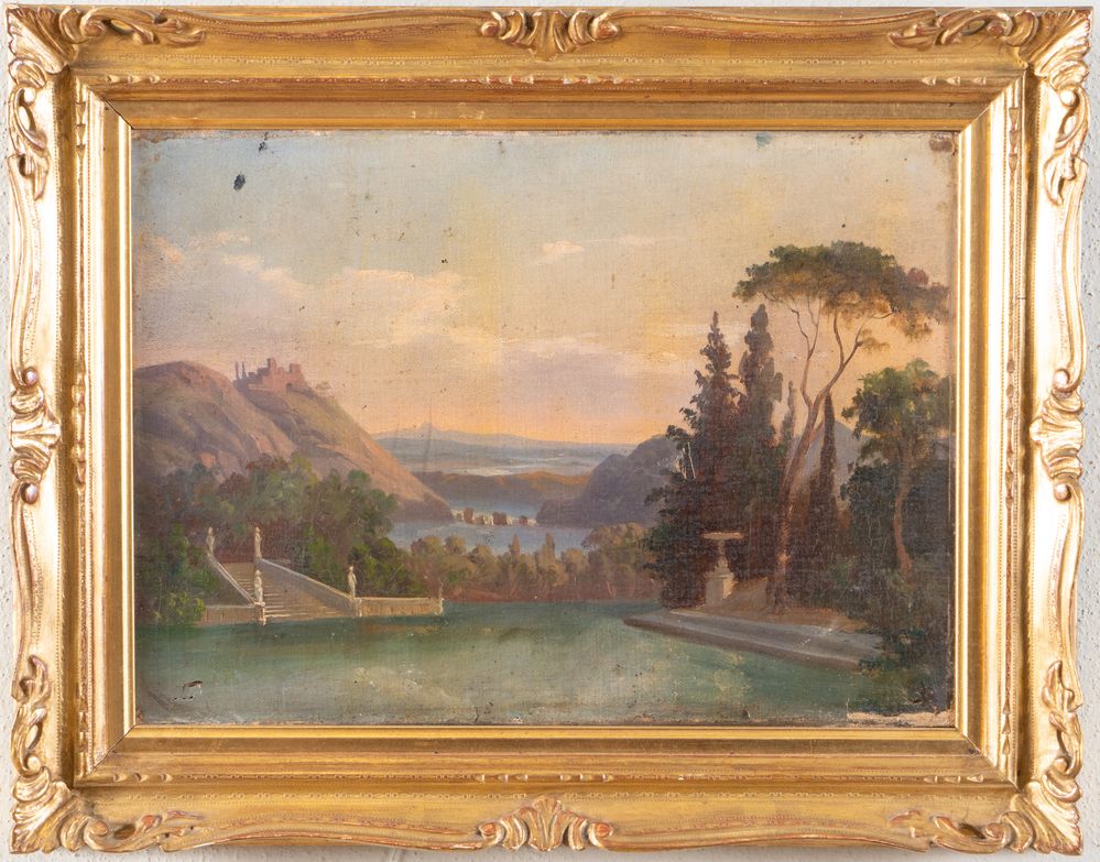 Maestro del XIX secolo. "Paesaggio". Olio su tela. Cm 26x37,3.