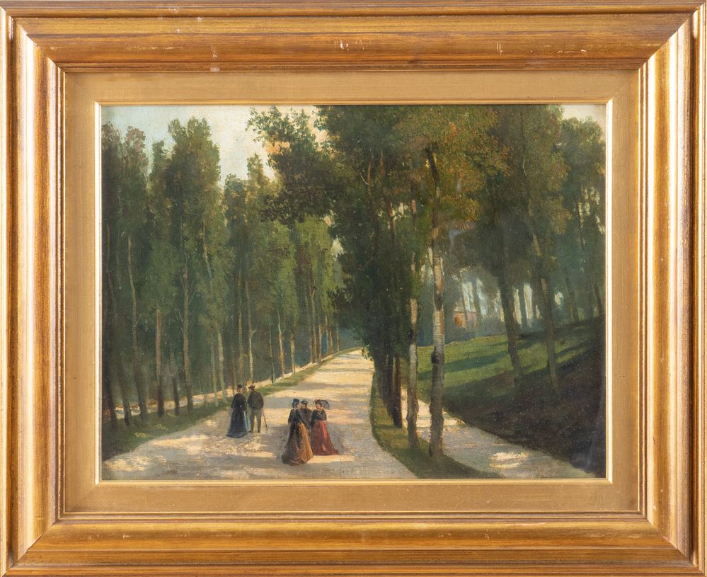 Pittore anonimo del XX secolo. "Passeggiata". Olio su tela. Cm 31,8x42. Sul...
