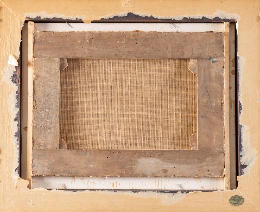Pittore anonimo del XX secolo. "Passeggiata". Olio su tela. Cm 31,8x42. Sul telaio reca scritte non decifrate.