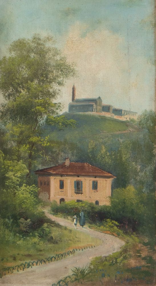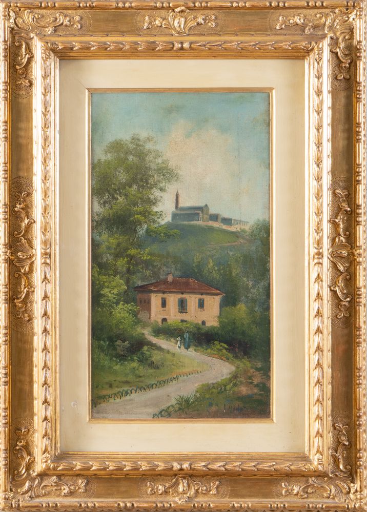 HENRY MARKO' (Firenze 1855 - Lavagna 1921) "San Michele in Bosco". Olio su tela. Cm 41x23. Opera firmata in basso a destra H. Marko'.
