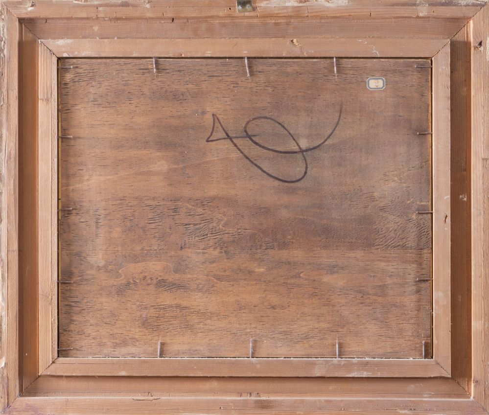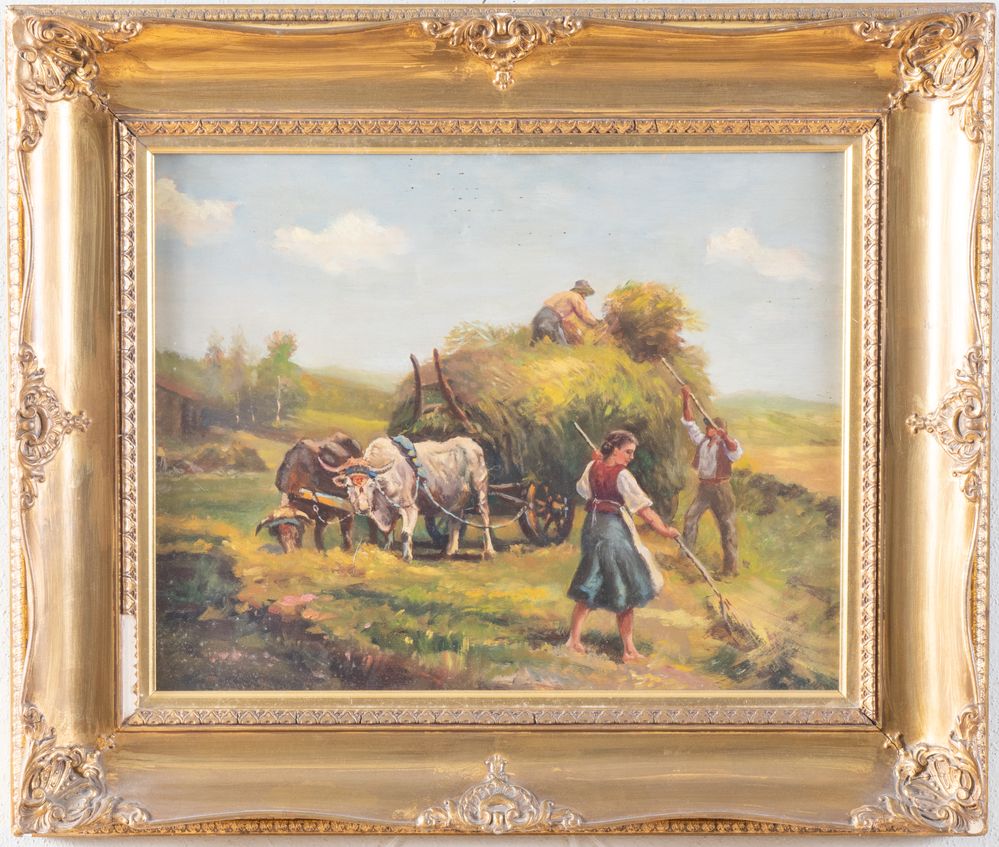 Maestro toscano del XIX secolo. "Scena contadina". Olio su tavola. Cm 40x50.