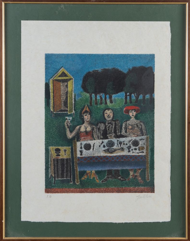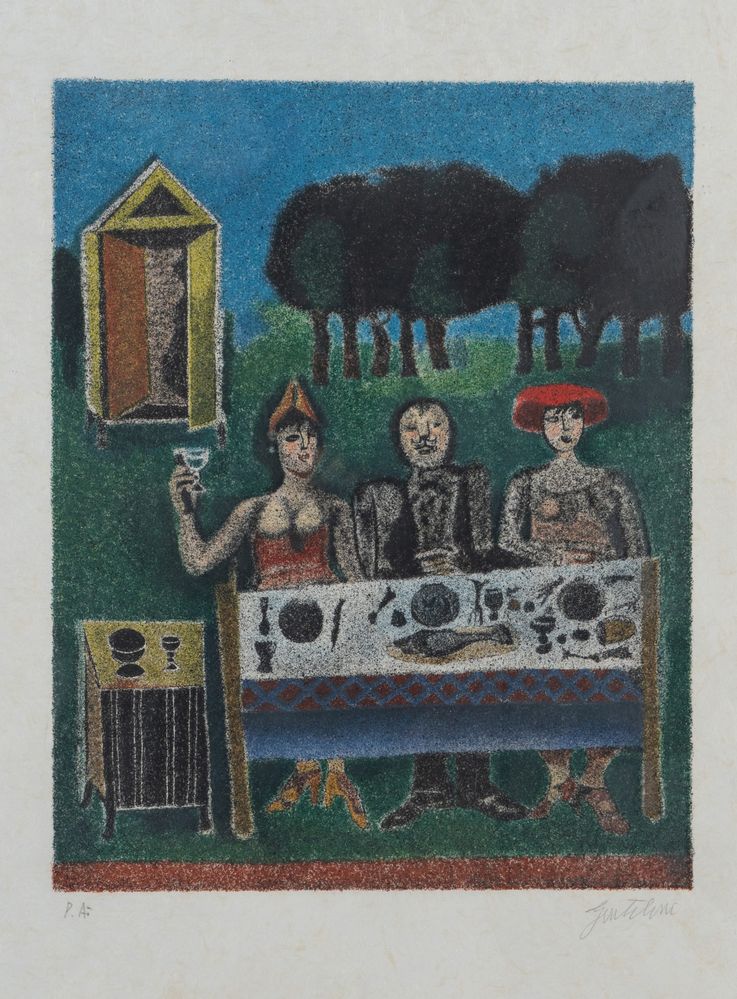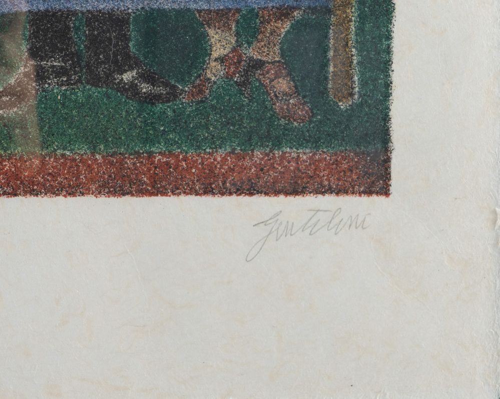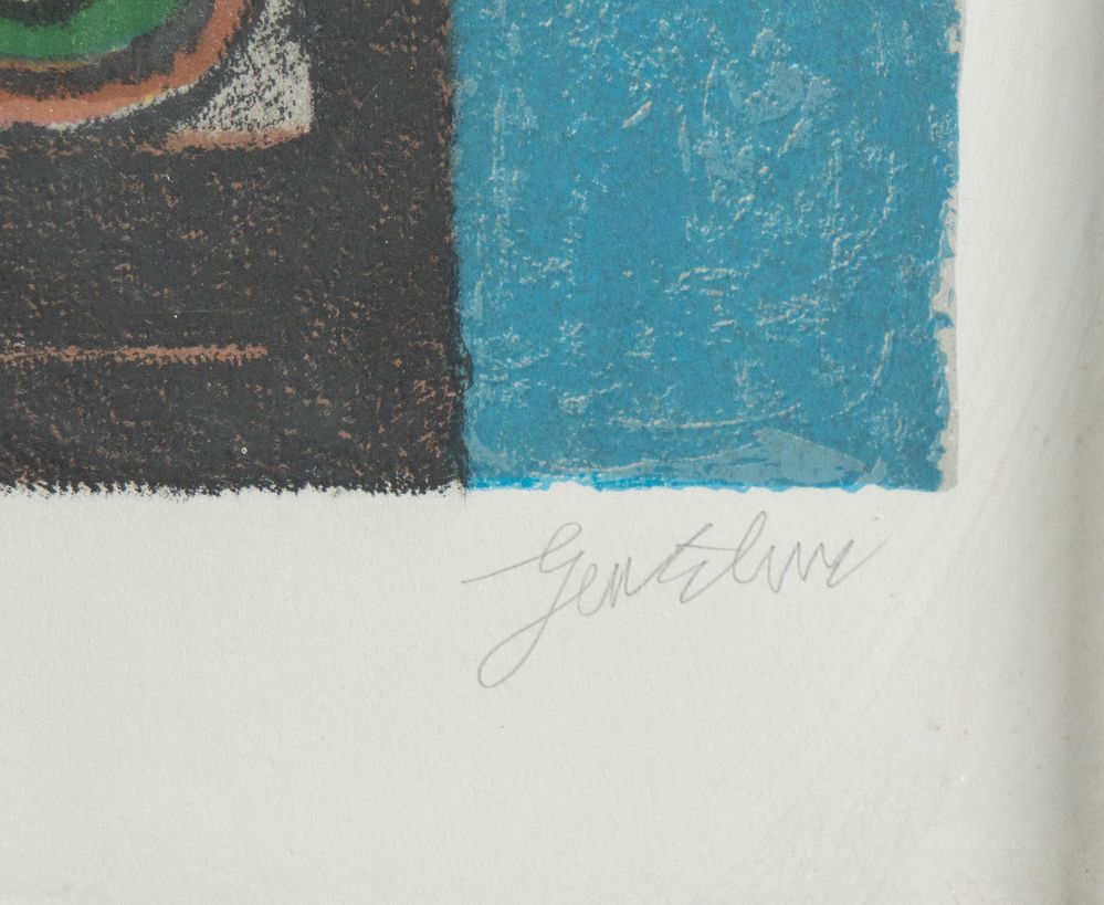 FRANCO GENTILINI (Faenza 1909 - Roma 1981) Coppia di litografie a colori su carta. Ciascuna di cm 64,5x47,7 (foglio) e cm 45x35 (lastra); cm 63x46,5 (foglio) e cm 50,5x39,5 (lastra). Opera firmata in basso a destra Gentilini. Reca tiratura in basso a sinistra P.A. Opera firmata in basso a destra Gentilini. Reca numeri di tiratura in basso a sinistra XVIII/XXX.