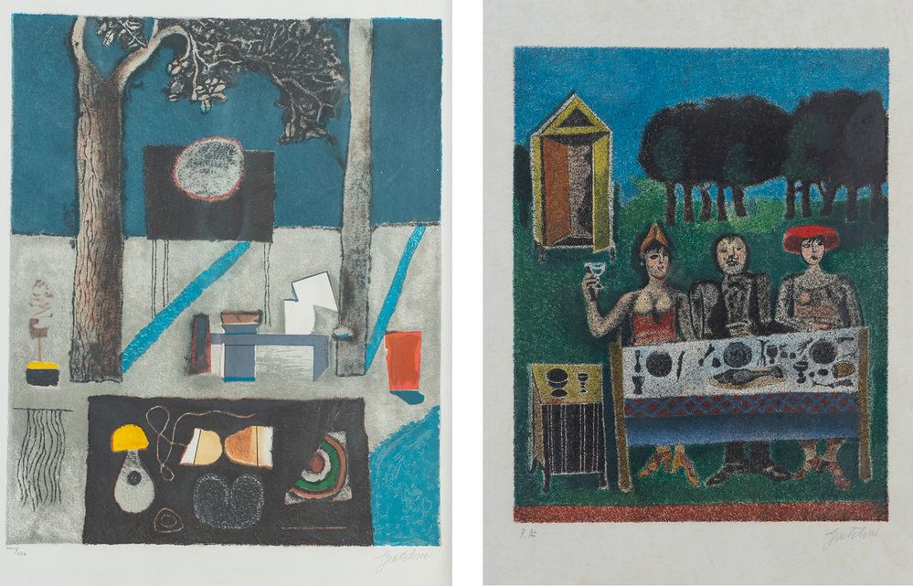 FRANCO GENTILINI (Faenza 1909 - Roma 1981) Coppia di litografie a colori su...