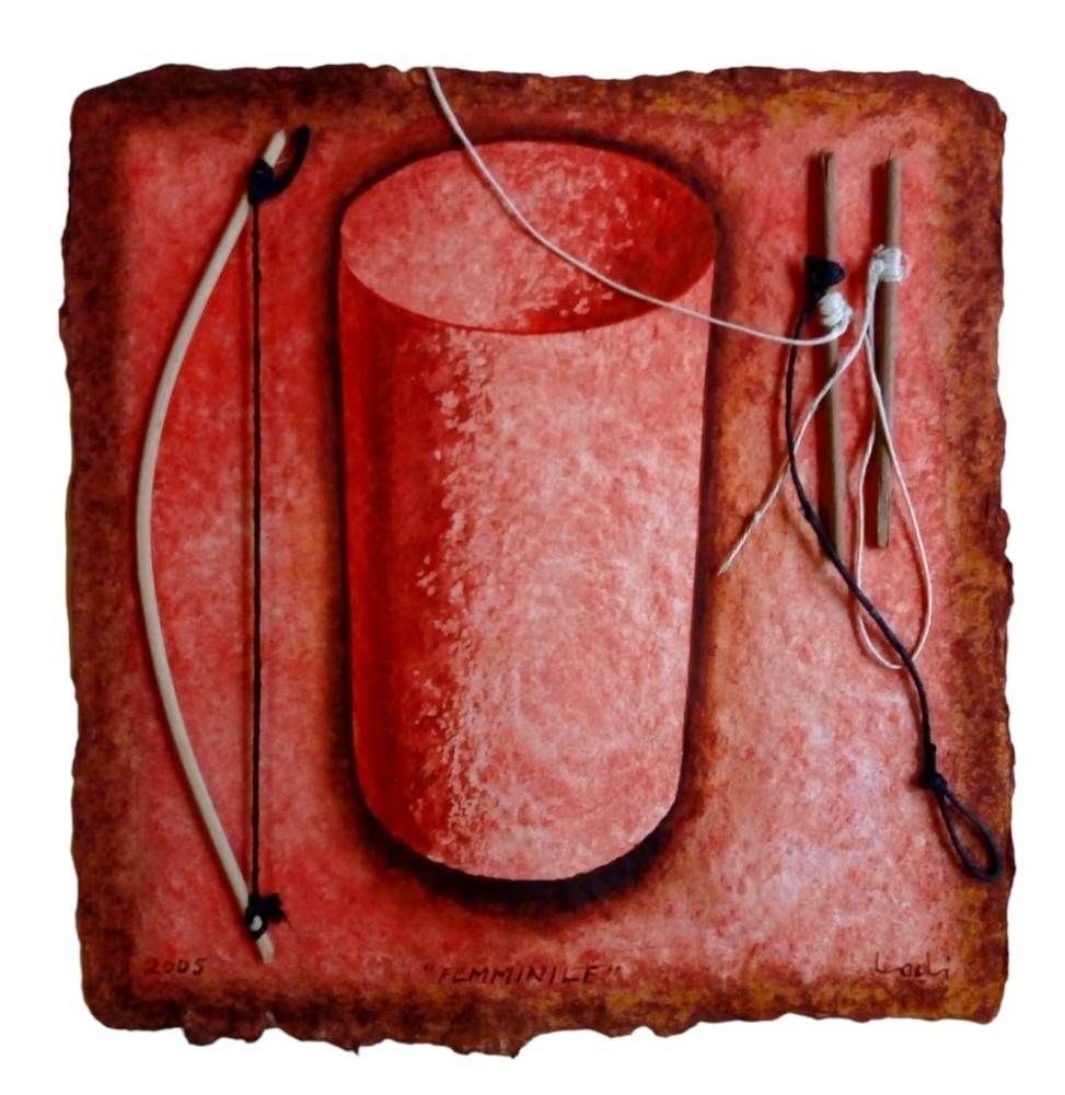 Acquaerello e collage su carta 24x24 cm; firma in basso a destra.