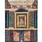 Edicola a tempietto realizzata con diverse tipologie di marmi e miniatura su carta raffigurante 'Madonna con Bambino'.