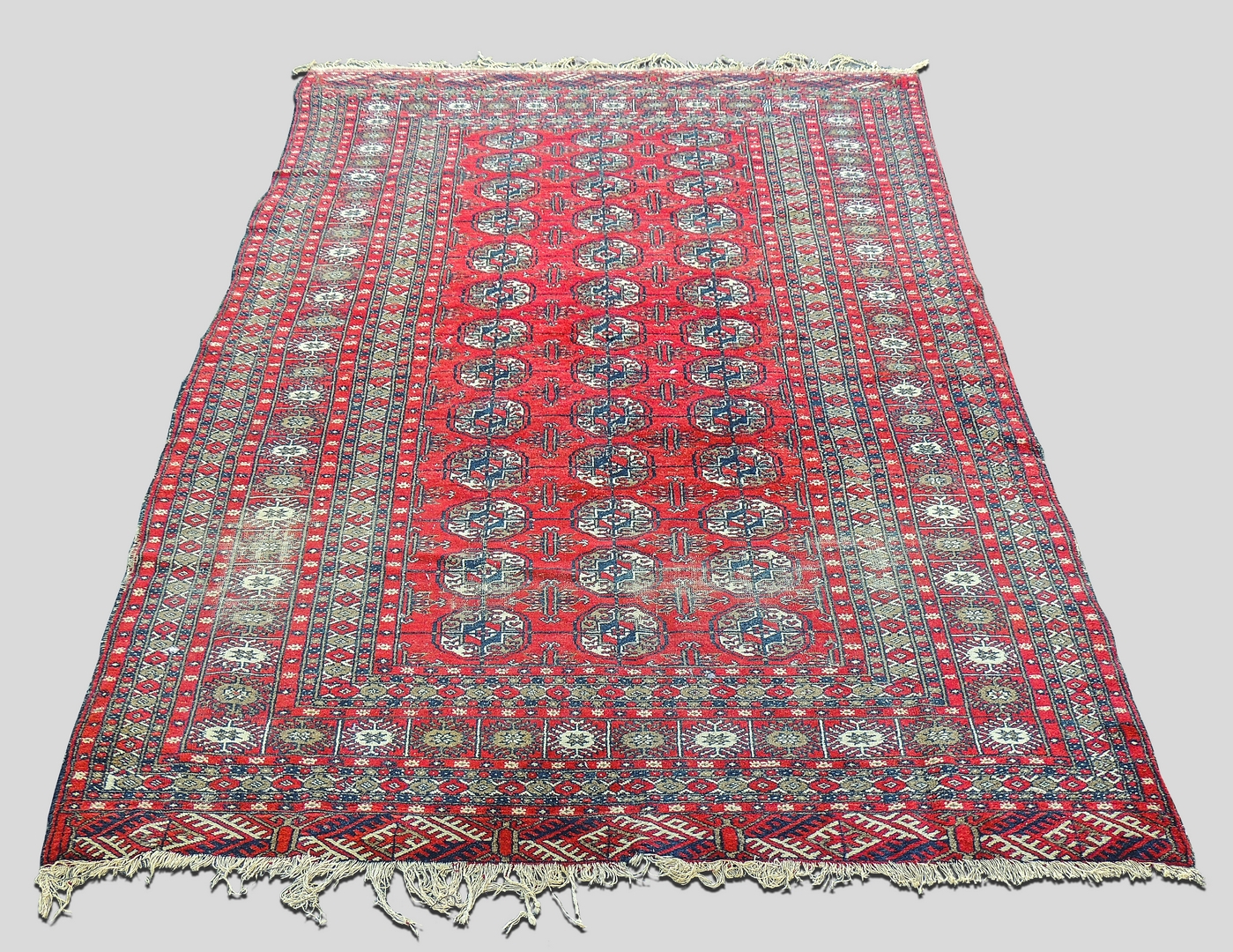 TAPPETO BUKARA fondo rosso con medaglioni a zampa di elefante