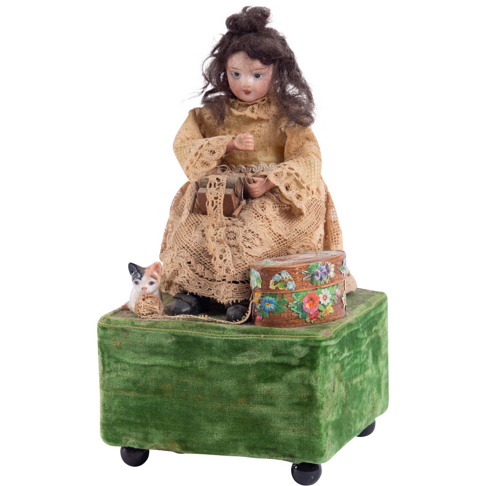 AUTOMA MUSICALE con carillon e bambina in porcellana.