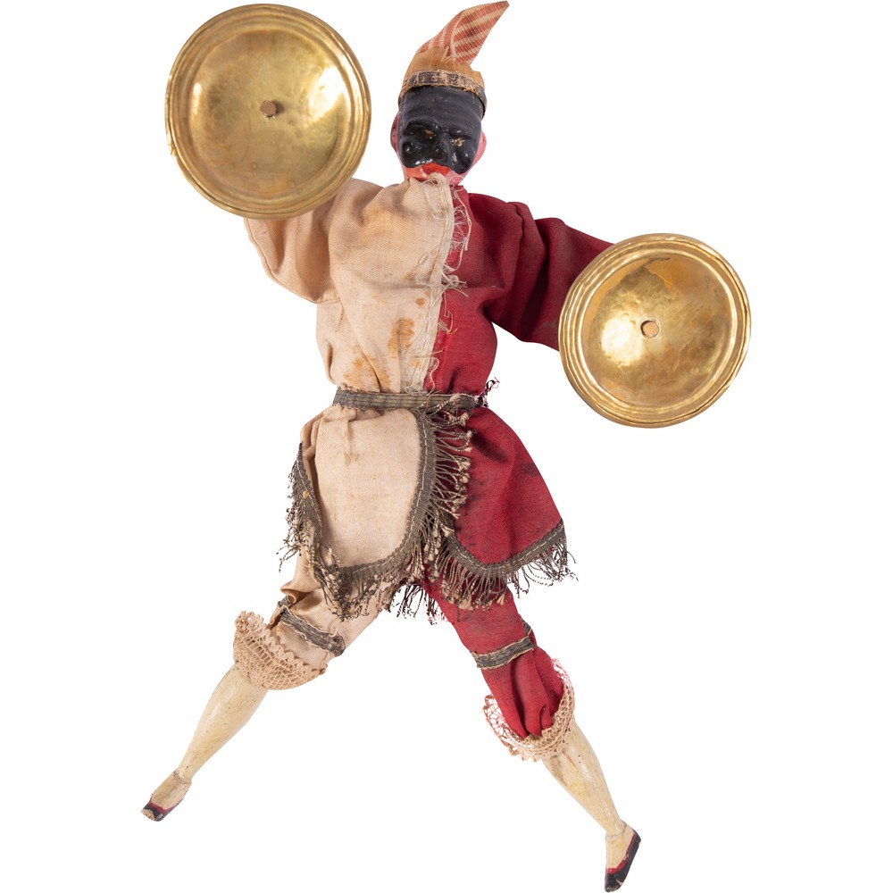 GIOCATTOLO, Pulcinella in legno con piattini da musica.