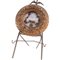 Bracciale sinacole in filigrana d'oro, corallo, granati, ambra e pendente in cristallo di rocca, entro cornice dorata non coeva e cavalletto in metallo.