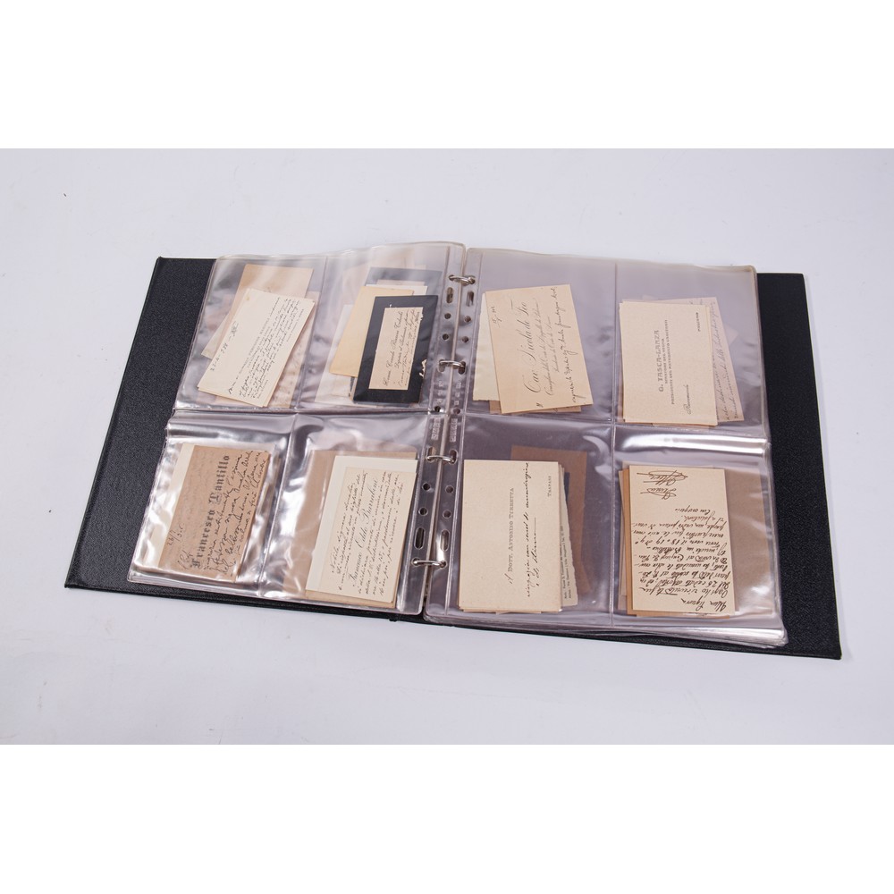 RACCOGLITORE con oltre 300 biglietti da visita del periodo fine XIX inizi del XX secolo. Tra i biglietti da visita quelli dei personaggi cittadini più in vista del periodo di riferimento.