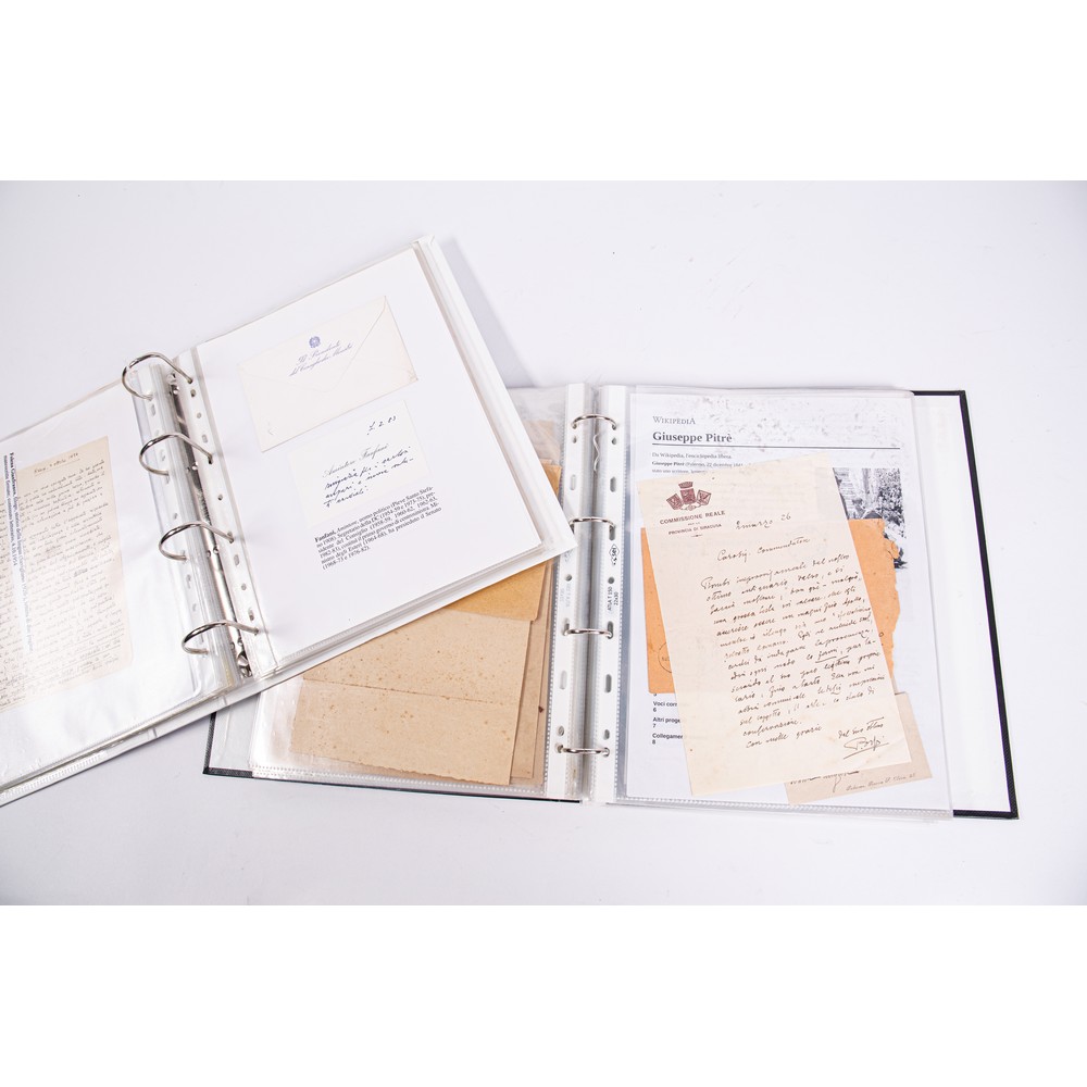 DUE RACCOGLITORI DI AUTOGRAFI E BIGLIETTI DA VISITA di personaggi del mondo del teatro, dell’arte, della letteratura, della cultura, delle scienze, della politica e dell’industria del periodo fine del XIX - XX secolo. I due raccoglitori contengono complessivamente 91 pezzi.