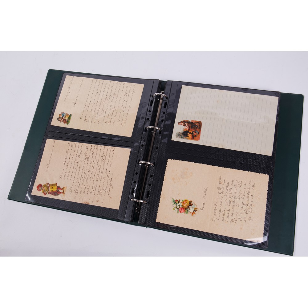 RACCOGLITORE CONTENENTE UNA RACCOLTA DI CARTE DA LETTERA DEL PERIODO FINE XIX – INIZIO XX SECOLO. Il raccoglitore contiene oltre 120 eleganti e finemente decorate carte da lettera scritte.